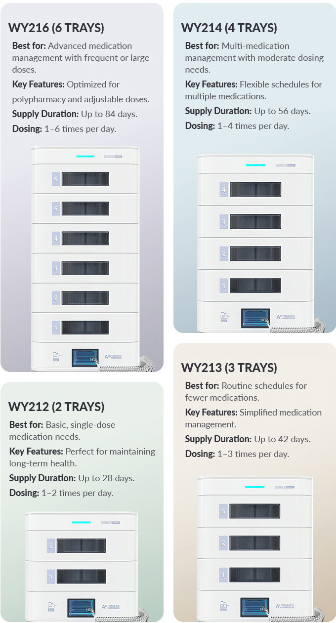 Simplify medication routines with our innovative tiered system: one layer, one dose. Schedule dispensing times for each tier, enjoy effortless refills, and eliminate medication confusion with clear, separate storage for different pills.