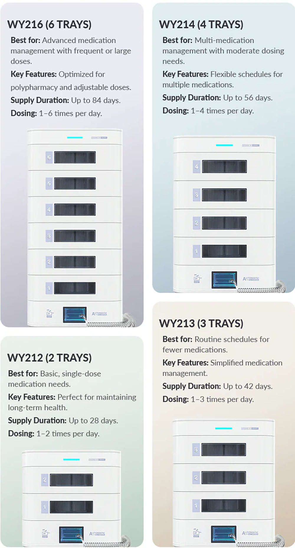 Stay in control with flexible scheduling options: select specific days of the week, dispense every few days, or set daily doses. Choose between simultaneous dispensing or staggered dispensing to suit your routine seamlessly.
