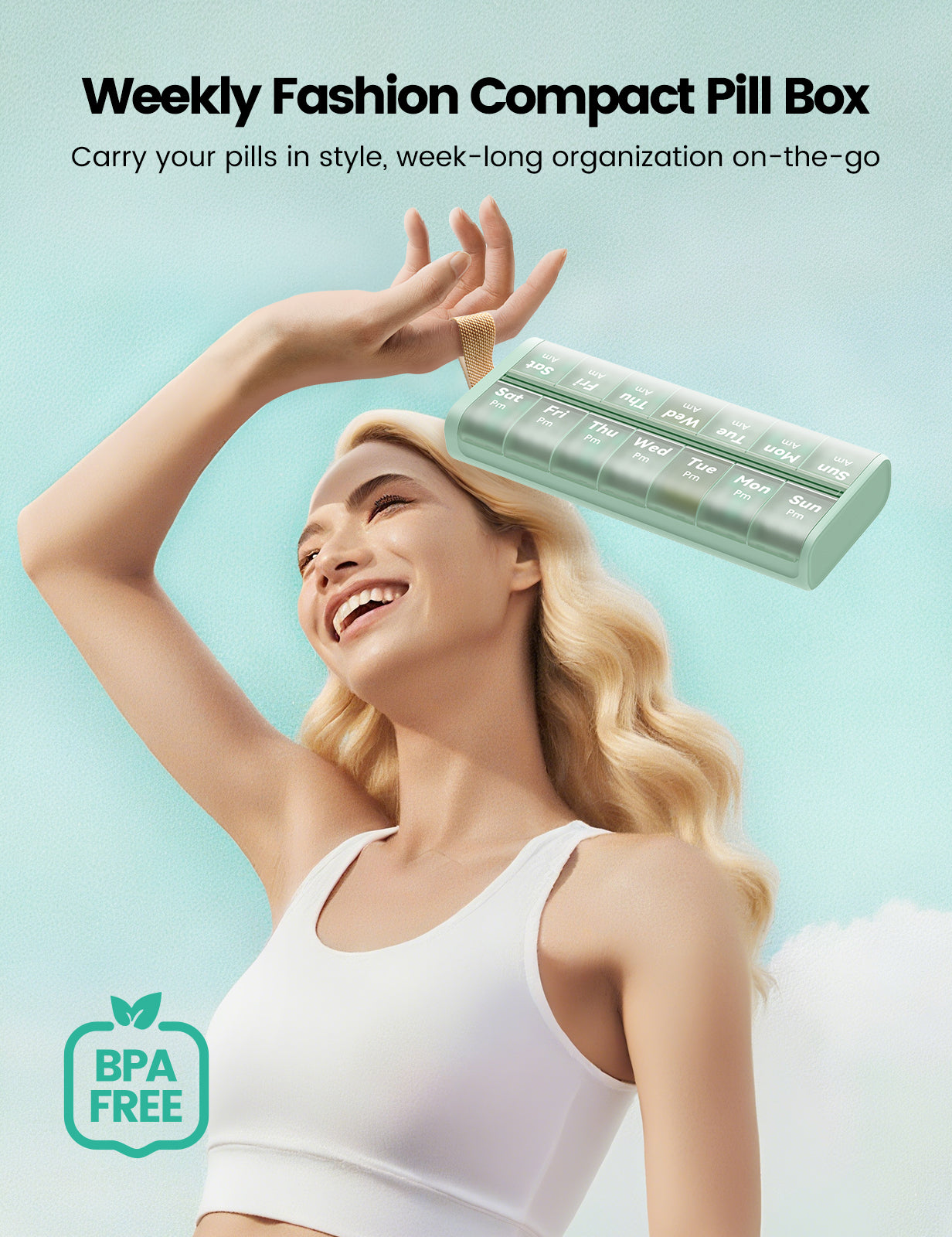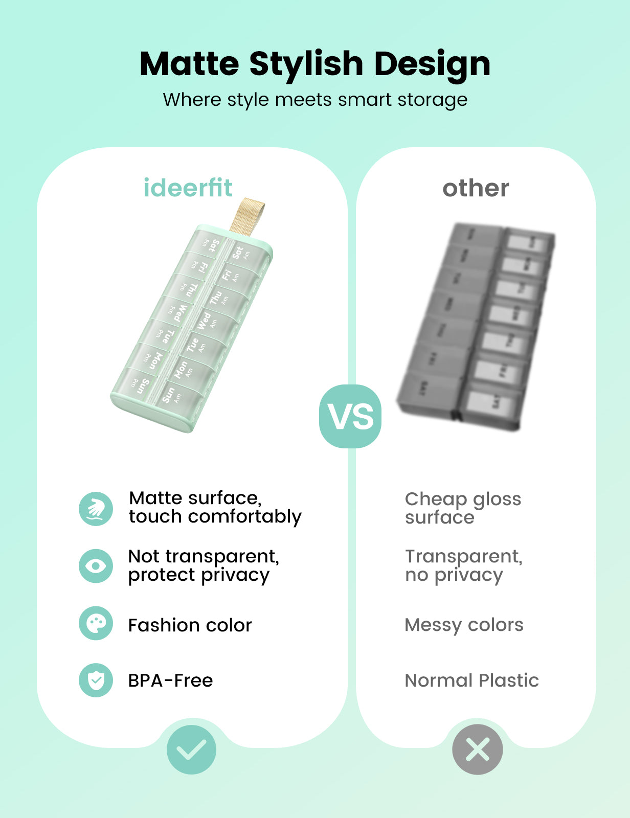 - 【Matte Privacy Design】 Crafted with a subtle matte finish, this pill case offers a modern look and opaque cover for discretion. The surface resists fingerprints, feels comfortable, and enhances the style of your weekly pill organizer.
