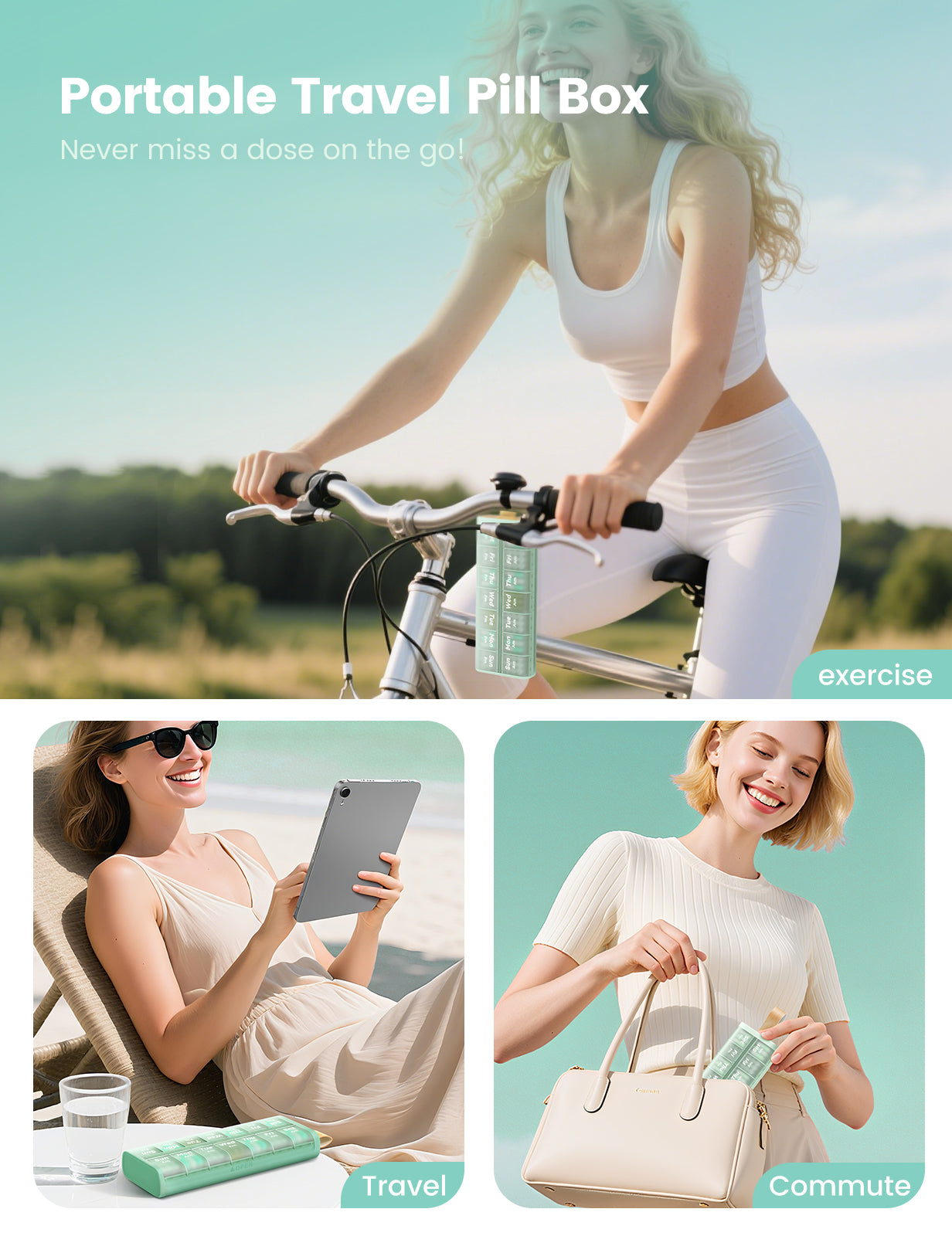 - 【Portable Weekly Pill Organizer】 This 7 day pill organizer AM PM comes with a practical carry handle for easy portability. Each large pill box provides ample space for vitamins, supplements, or medicines—ideal for daily use, commuting, or travel.