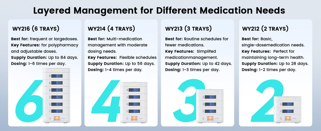 - Dual Setup Options with Voice Guidance: Seniors can use on-device buttons with voice prompts to set dose times step by step.Or family members can configure everything remotely via the app.Simple for seniors. Easy for caregivers