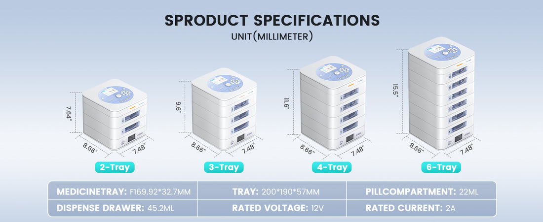 - App-Controlled Monitoring & LogsView dose history and adherence trends in real time.Lock or unlock the lid, update plans remotely, or perform emergency dispensing.Easily share logs with doctors or caregivers